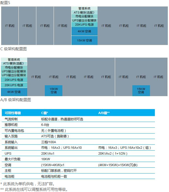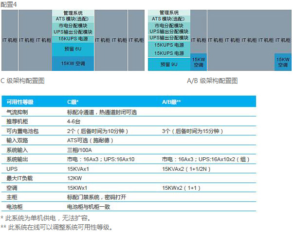 支持最高A級可用性等級:滿足國標GB50174 A、B、C三種可用性等級,可依據(jù)客戶需求,提供N,N+1,2N等配置,滿足最高A級水平。