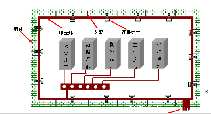 集成網(wǎng)絡系統(tǒng)主干交換機所在的中心機房應設置均壓環(huán),將機房內(nèi)所有金屬物體,包括電纜屏蔽層、金屬管道、金屬門窗、設備外殼以及所有進出大樓的金屬管道等金屬構(gòu)件進行電氣連接,并接至均壓環(huán)上,以均衡電位。
